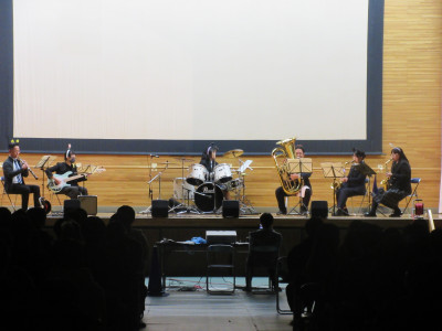 今回は、楽器演奏のできる先生方にも参加していただき、「高嶺の花子さん」「小さな恋のうた」の2曲を披露しました。